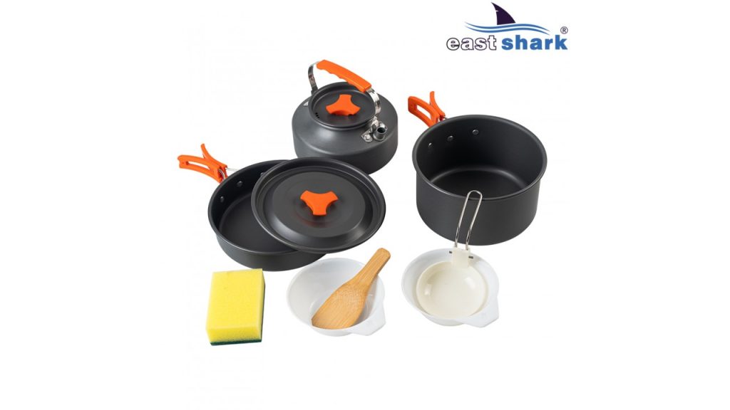 Чайник, кастрюля и сковородка алюминиевые с тефлоновым покрытием.