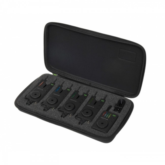 Carp Pro Cratus 4+1 (6910-004) – набор электронных сигнализаторов поклевки с ресивером, размещенный в удобном кейсе. В набор входит 4 сигнализатора с LED-индикаторами красного, синего, зеленого и желтого свечения плюс ресивер и ремешок для него.Сигнализаторы Carp Pro Cratus – это простые и надежные электронные помощники карпятника. Они достаточно компактны и хорошо защищены от проникновения влаги. Каждый сигнализатор оборудован съемными ограничителями Snag Ears, которые защищают удилище от падения при порывах ветра или мощных боковых поклевках. На передней панели сигнализатора расположен световой индикатор поклевки, состоящий из 6 светодиодов, и 3 кнопки для регулировки громкости звука, его тональности, а также чувствительности сигнализатора. Каждая из регулировок имеет 6 уровней, которые отражаются на индикаторе в процессе настройки. Кроме того, бегущей дорожкой индикатор демонстрирует направление поклевки: от берега или в берег. На корпусе сигнализатора предусмотрен разъем для подключения механического индикатора поклевки (свингера). Вдобавок, данная модель CP Cratus имеет функцию «Ночной режим».Звук на сигнализаторах можно отключить, оставив звуковое оповещение только на ресивере. При этом ресивер точно передает выставленную тональность звука от каждого из сигнализаторов, а уровень громкости можно выставить соответствующей кнопкой. На передней панели ресивера размещены световые индикаторы поклевки – по цвету соответствующие каждому из сигнализаторов. При поклевке индикатор ресивера дублирует ее направление с показаний сработавшего сигнализатора. Также имеется функция памяти: можно посмотреть на каком из сигнализаторов произошла последняя сработка. Ресивер осуществляет уверенный прием на расстоянии 100-150 м.Для питания ресивера и сигнализаторов используется один элемент ААА с напряжением 1,5 В. Полужесткий кейс на молнии выполнен из прочного синтетического материала. Он надежно защищает электронные устройства Carp Pro Cratus 4+1 от пыли и влаги.