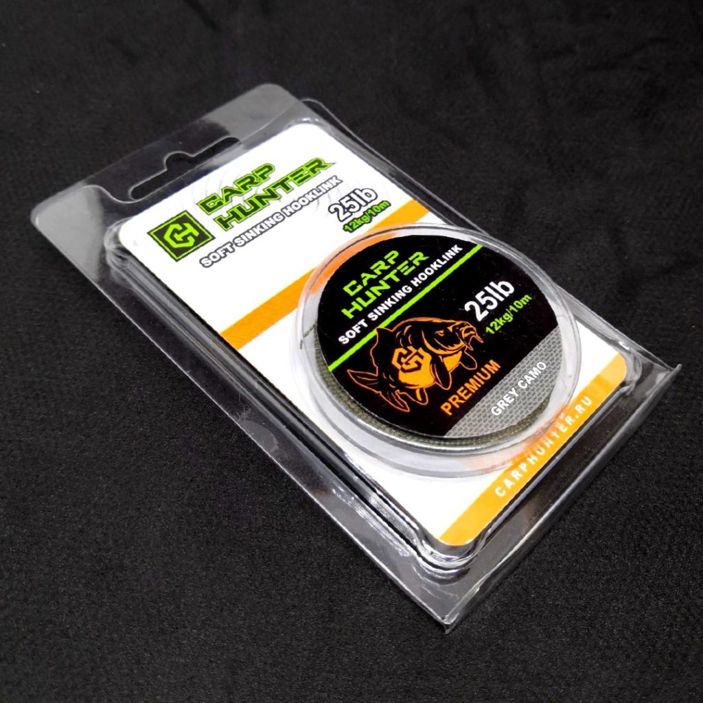 Поводковый материал CarpHunter PREMIUM Soft Sinking Hooklink 25lb (12кг) 10м (grey camo)