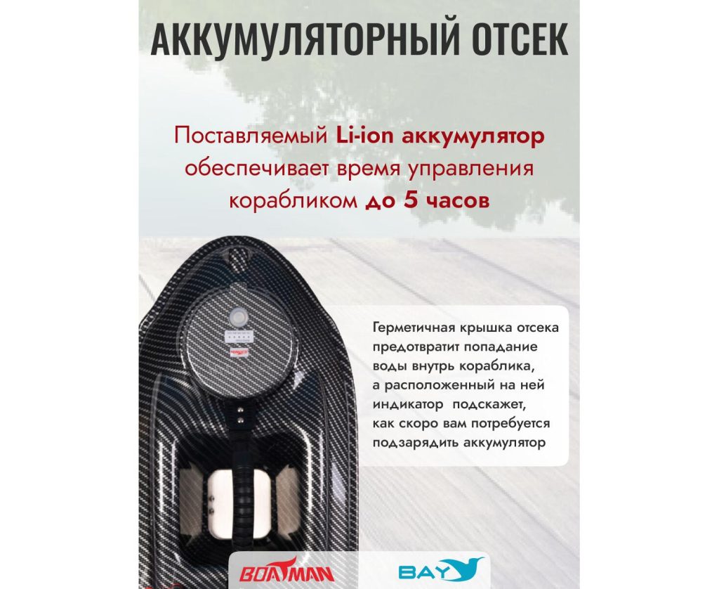 Герметичная крышка отсека предотвратит попадание воды внутрь кораблика, а расположенный на ней индикатор подскажет, как скоро вам потребуется подзарядить аккумулятор
