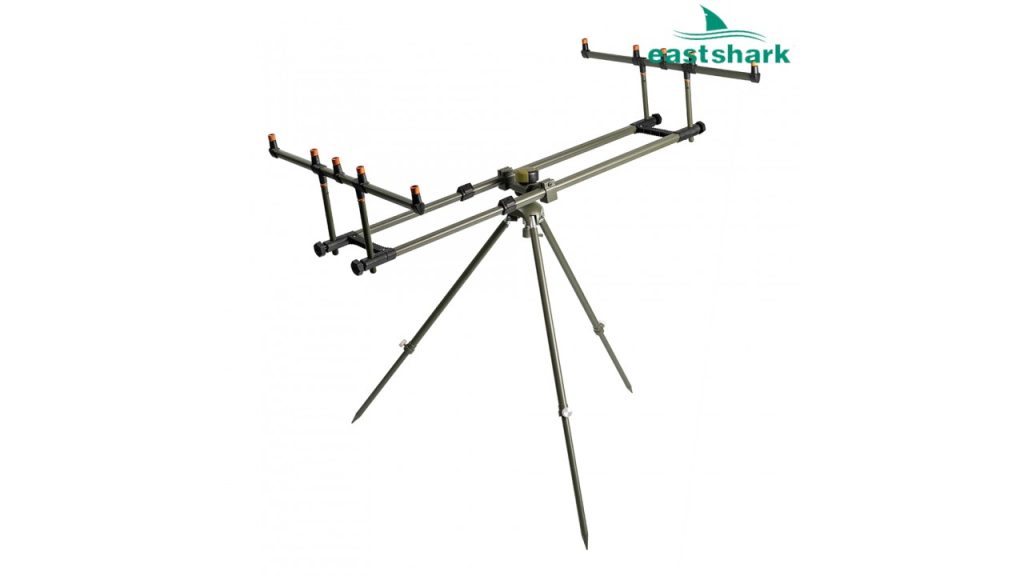 Rod-pod SDG-122-5 имеет мощную устойчивую металлическую конструкцию на треноге, одна из самых популярных моделей подставок EastShark.
