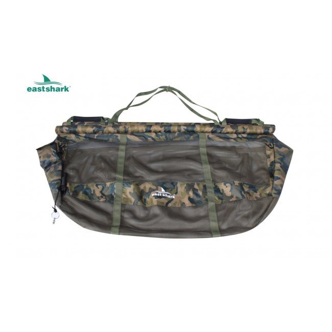 Выполнена из плотного материала (полиэстер 210D) с сетчатыми вставками, по краям имеет надежную молнию, позволяющую застегнуть сумку полностью по кругу и разместить в ней рыбу в воде.