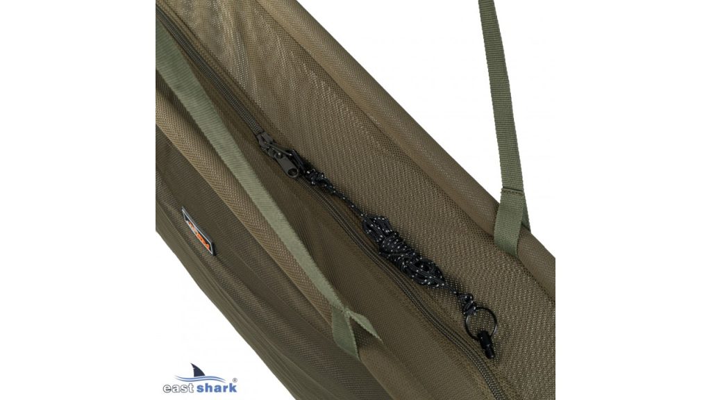 Выполнена из плотной сетки, по краям имеет надежную молнию, позволяющую застегнуть сумку полностью по кругу и разместить в ней рыбу в воде.