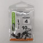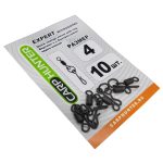 Вертлюги с быстросъемом через кольцо CarpHunter #4 черные (Quick change swivel with ring) прекрасно подходят к разъему In-Line грузил (к скользящим грузам). Благодаря удобной застежке, можно легко и быстро заменить поводок. Застежка — быстросъем плотно закрывается отводчиком поводка, который способствует его анти-перехлесту